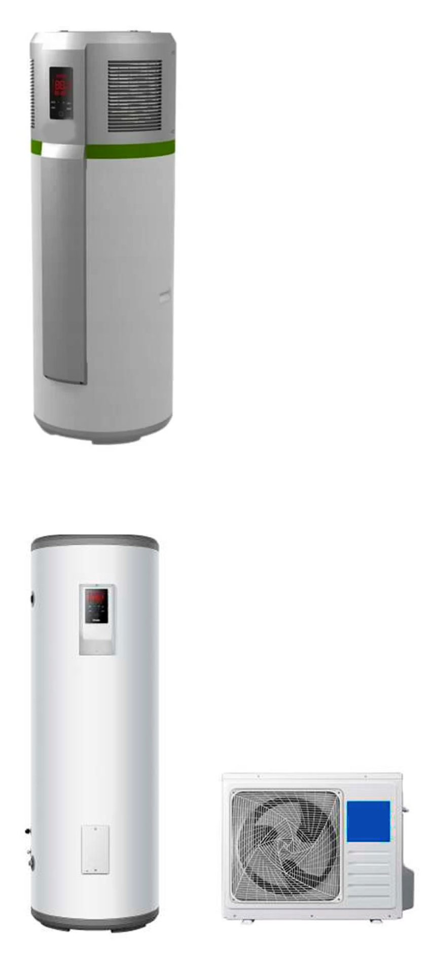 - Monoblock or Split System: With the system fully integrated or as an air conditioner, the unit is located outside the unit, and the tank is external.